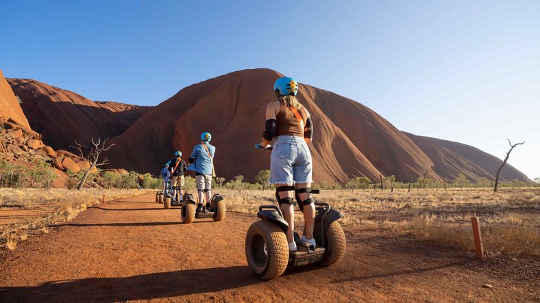 Spend the morning exploring the base of Uluṟu. Walk the base track, hire a bike or join an Uluru Segway tour as you move around the rock, learning about the cultural significance of this ancient landscape.